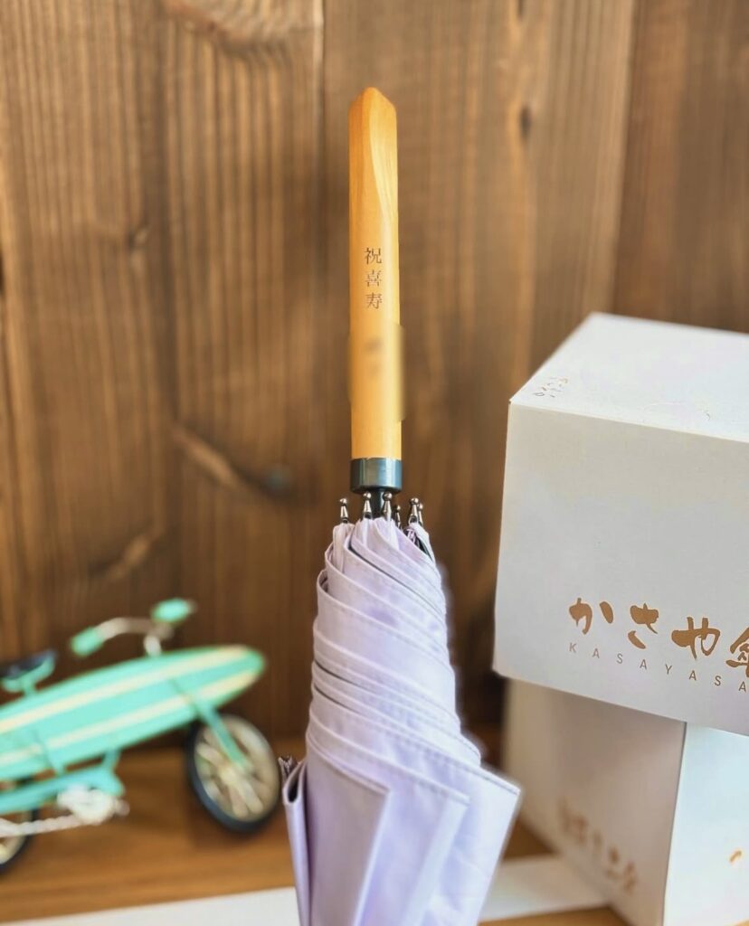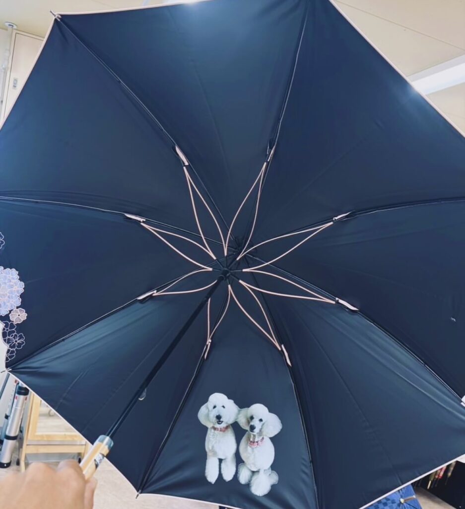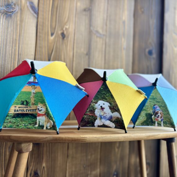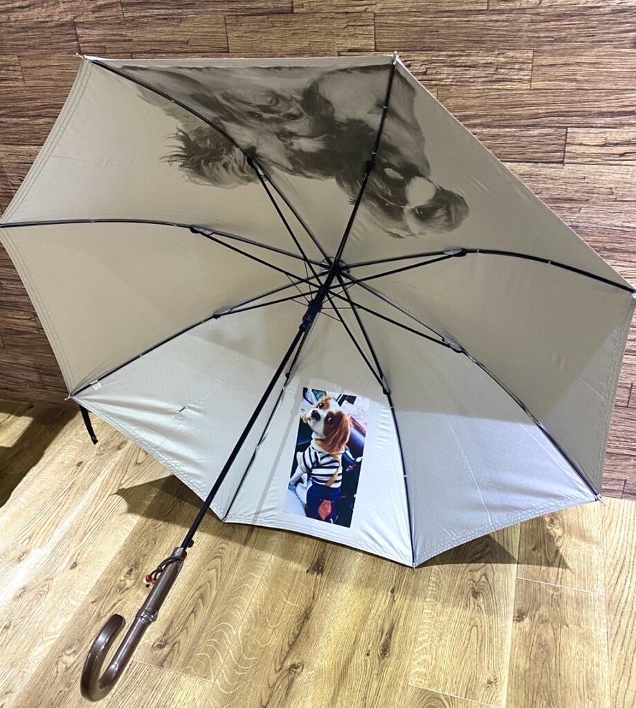 ミニ傘へのプリント以外にも、長傘へのプリントも可能です!