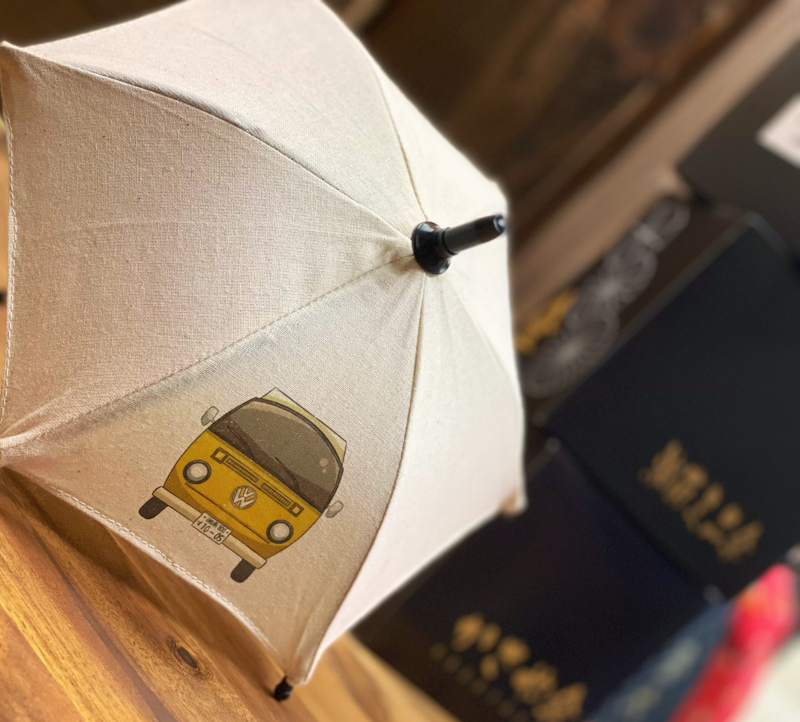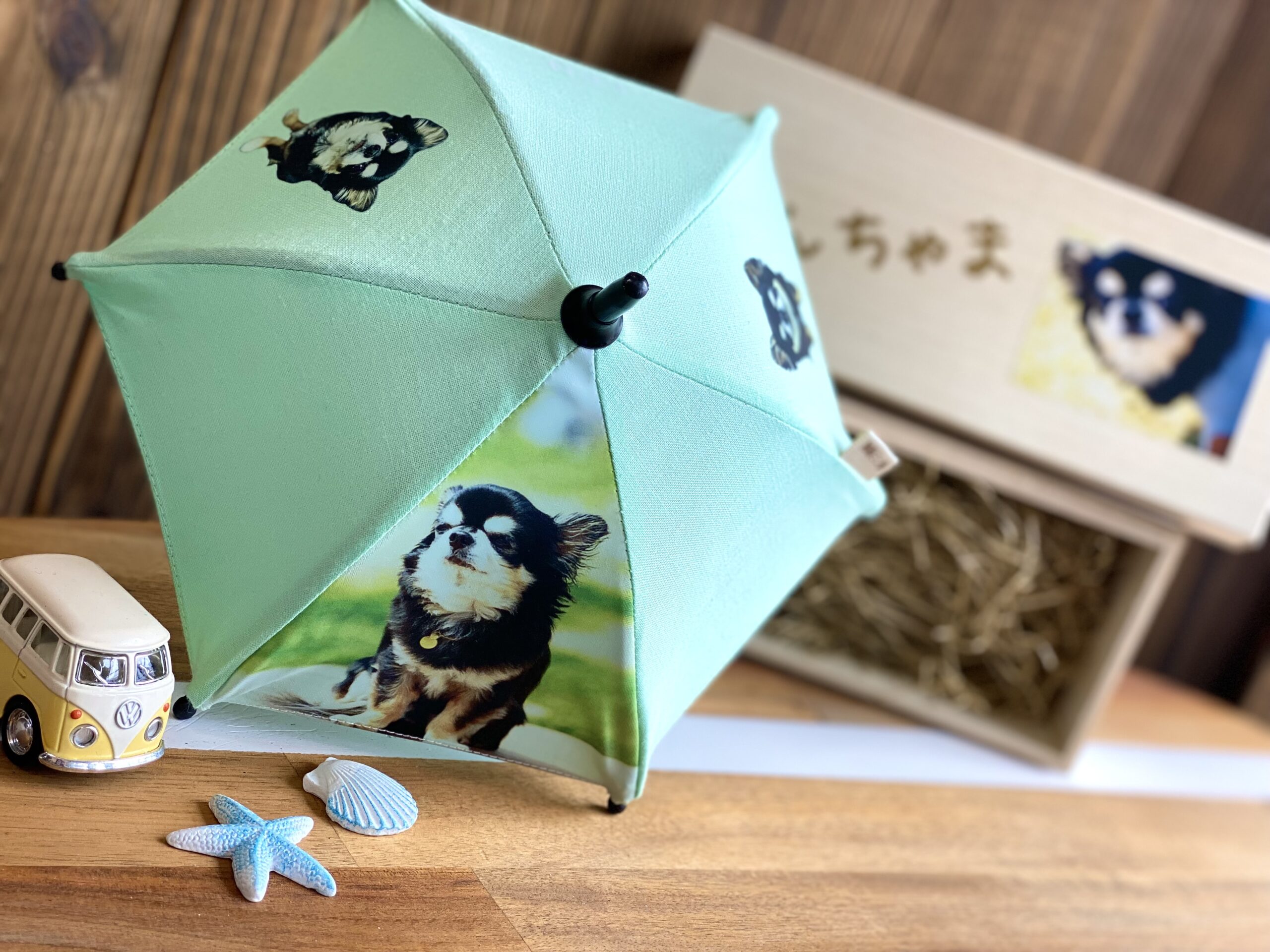 通常サイズ1/4サイズの湘南ミニ傘も大人気です!文字入れ、ロゴ、写真などもプリント出来ます。会社やお店のロゴ、ペットのお写真、出産祝いなど様々な用途に。