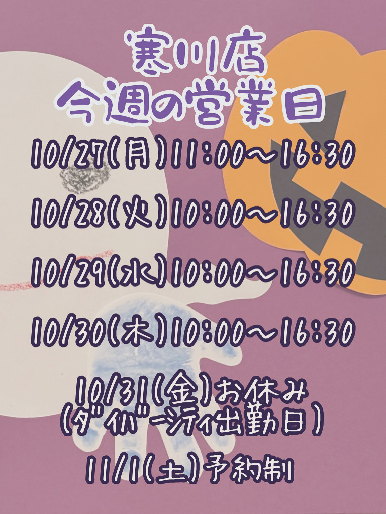 10/27(月)寒川店今週の営業日程🧵