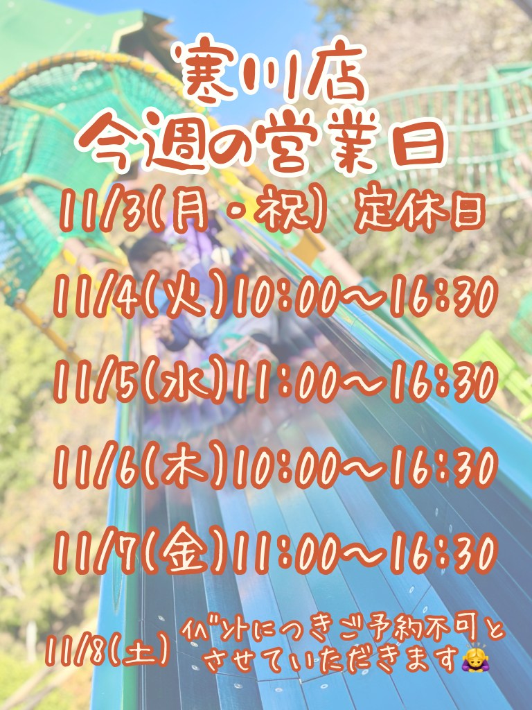 11/4(火)🧵寒川店今週の営業日程✔🗓