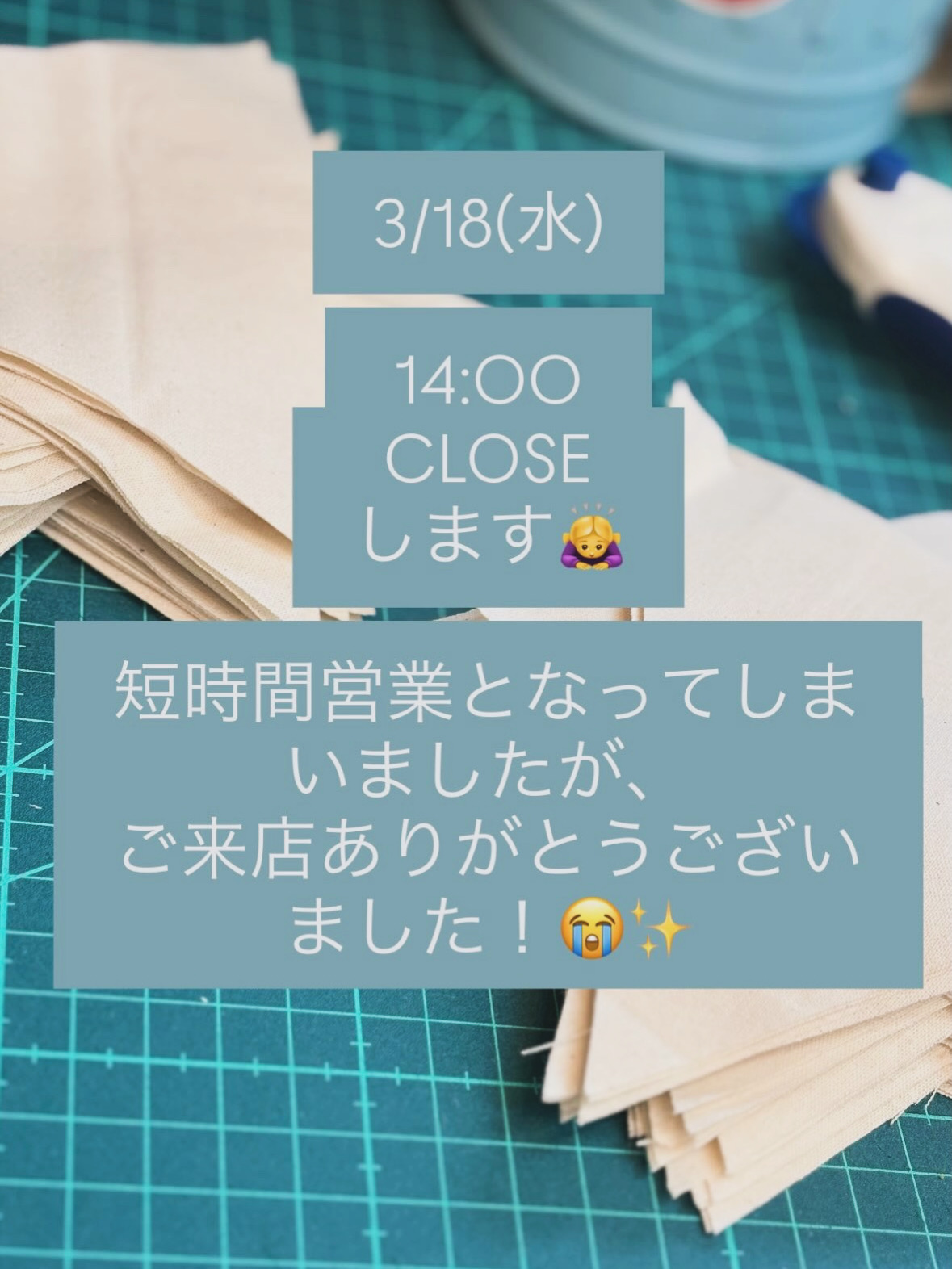 3/18(水)14:00CLOSE🙇♀️